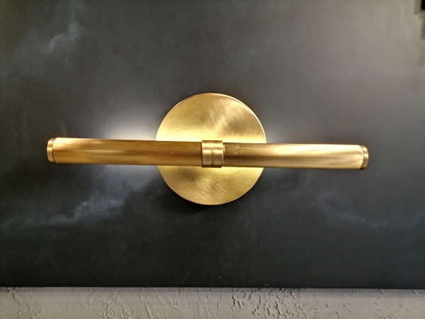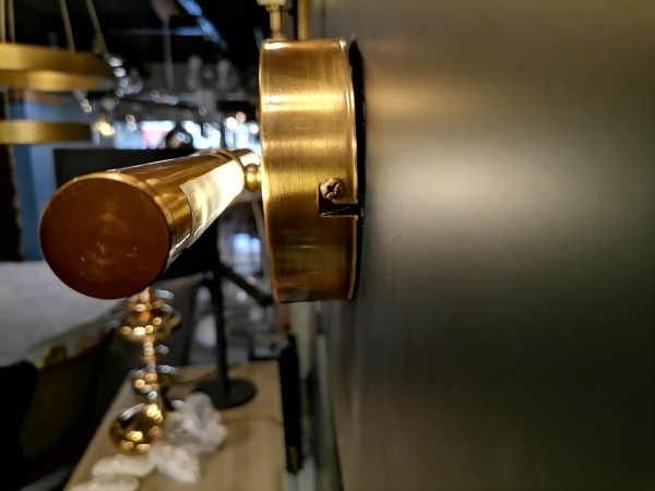 Farklı çaplarda metal boruların birbirine bağlanması ile güçlü bir duruş, metalin soğukluğu ve sertliğiyle eskitme rengin sıcaklığının kontrastı sonucunda ortaya çıkan şık bir aydınlatma